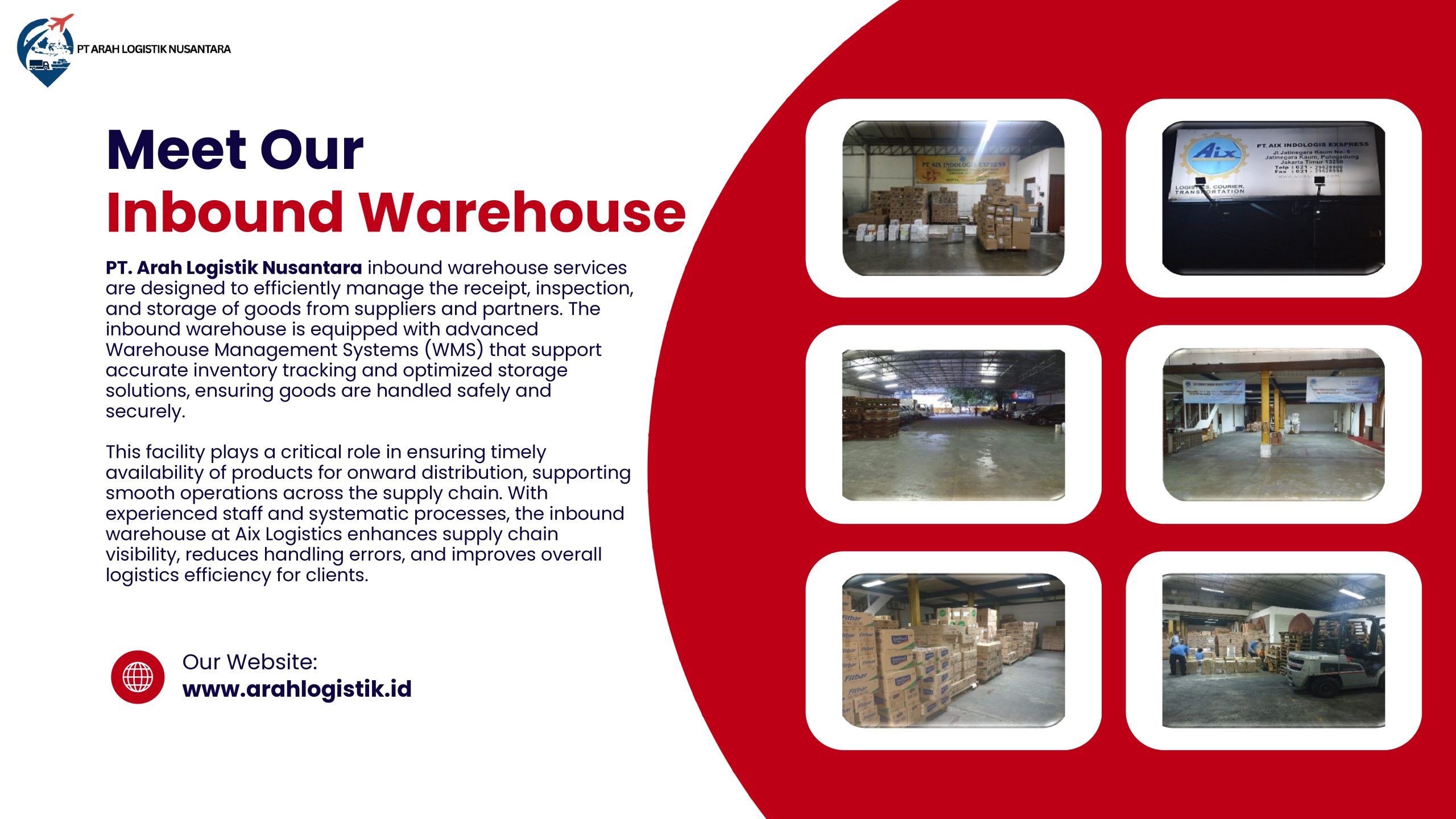 Dengan 45 cabang yang tersebar strategis di seluruh Indonesia, PT. Arah Logistik Nusantara dan AIX Logistics menyediakan layanan pengiriman door-to-door ke lebih dari 45 kota untuk memastikan cakupan luas dan kemudahan akses.